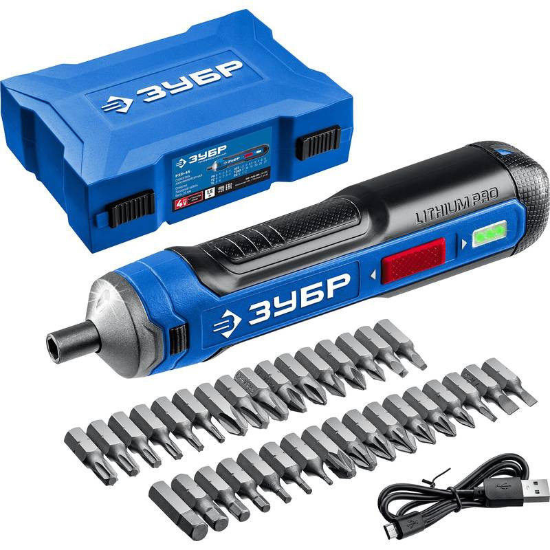 —ЗУБР ZUBR GO 4Vmax, аккумуляторная отвертка, кейс, 33 биты, Профессинал PSD-4S