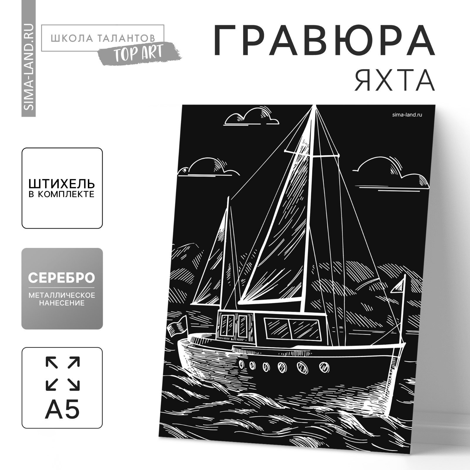 —Гравюра " Яхта " с металлическим эффектом серебра А5