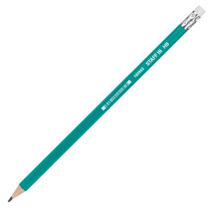 Изготовлен из пластика, оснащен ластиком. Имеет шестигранное сечение. Карандаш длиной 185 мм легко точится и не крошится. Выполнен в зеленом цвете. Поставляется заточенным.