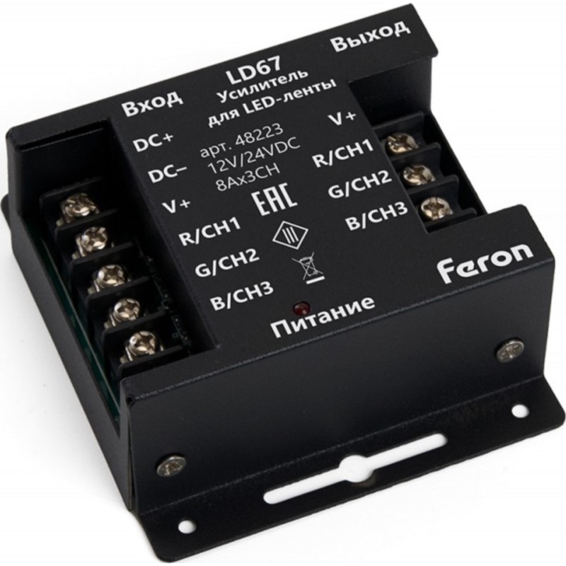 —Feron Усилитель для светодиодной ленты RGB 24А 12-24V, 73x34x79мм LD67 48223 (834110)