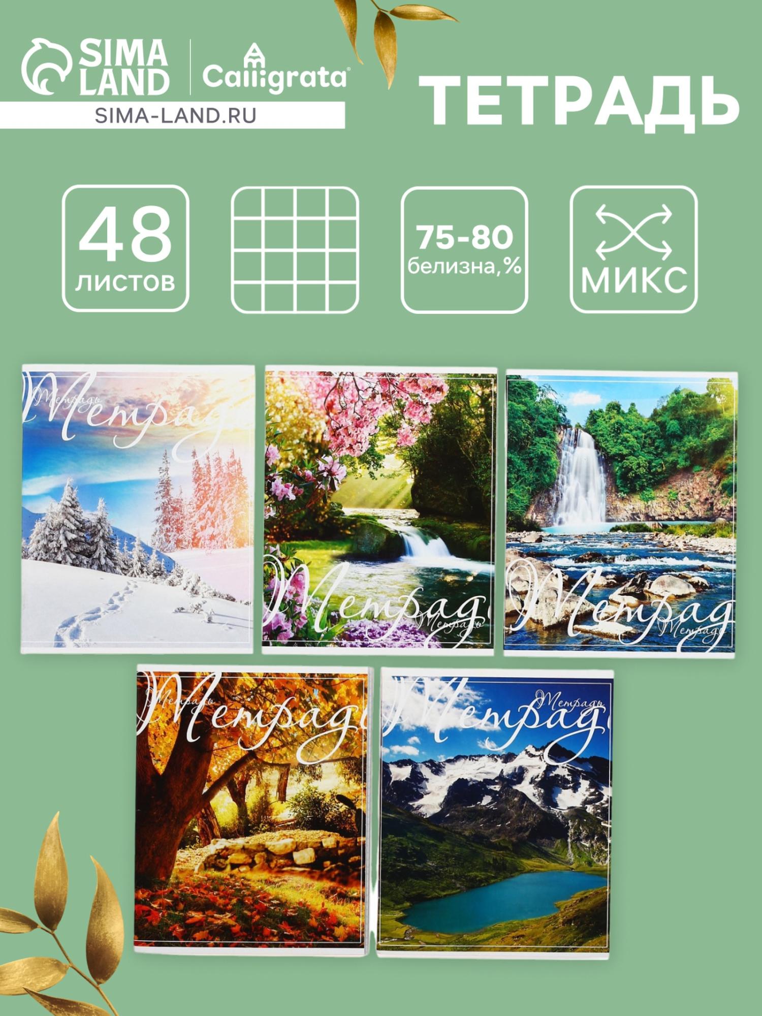 —Тетрадь 48л кл Пейзаж, обл мел карт хром, блок №2 бел 75%, 5вид МИКС 3043755