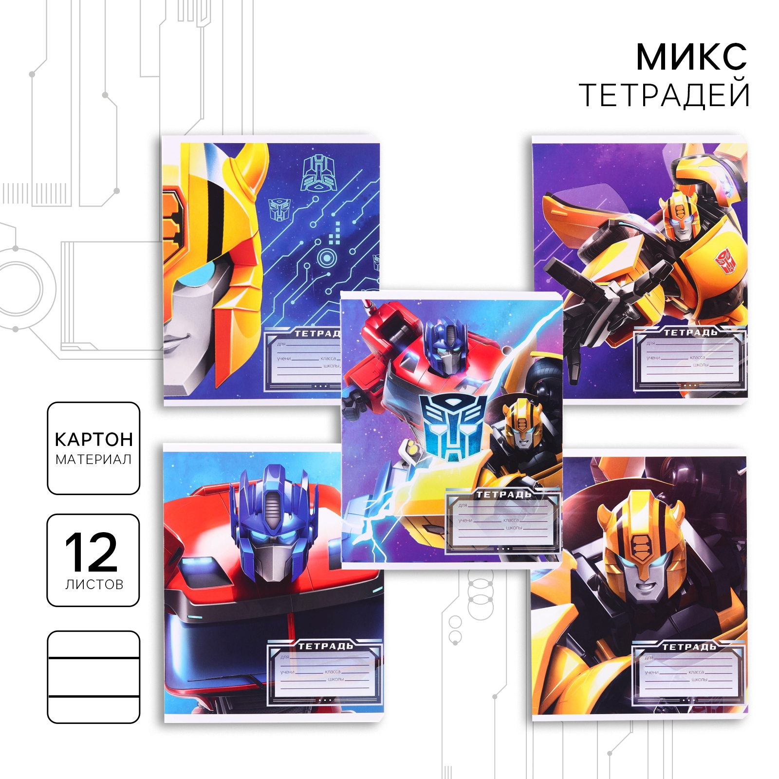 —Тетрадь 12л линейка Трансформеры Микс