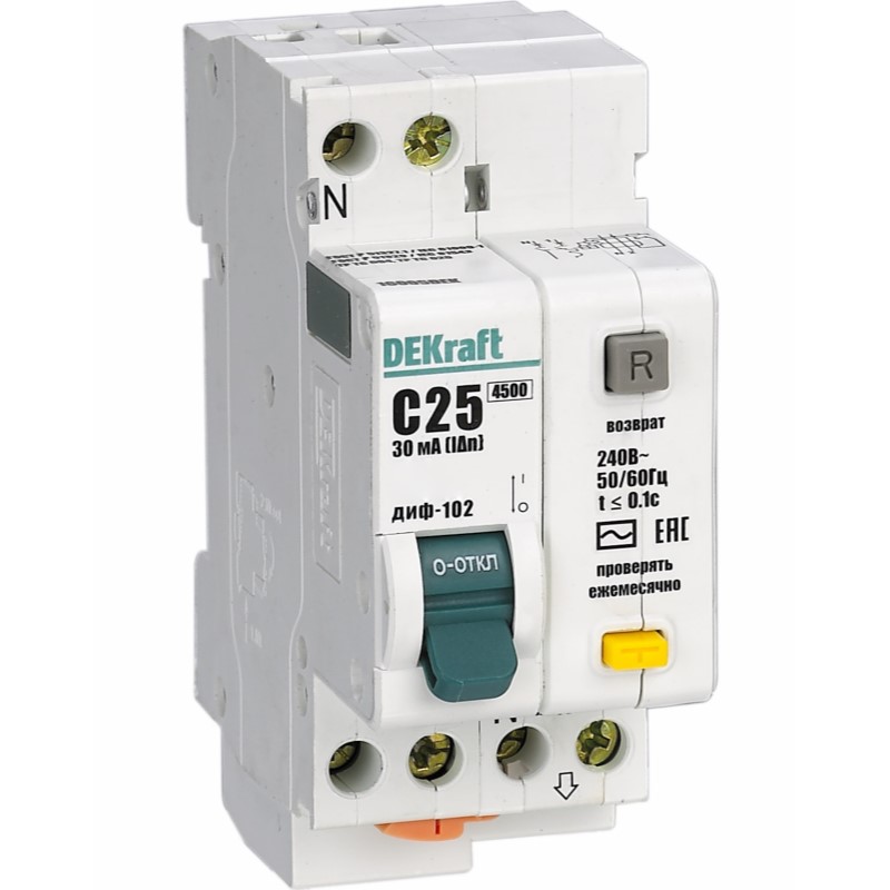 DEKraft АВДТ 1Р+N 16А 30мА тип AC х-ка С ДИФ-102 нов. 4.5кА