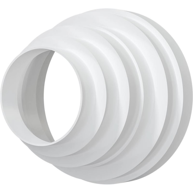 Переходник универсальный PU применяется для соединения каналов разных диаметров. Корпус подрезается для получения редуктора с необходимыми диаметрами. Соединение осуществляется напрямую с воздуховодами.