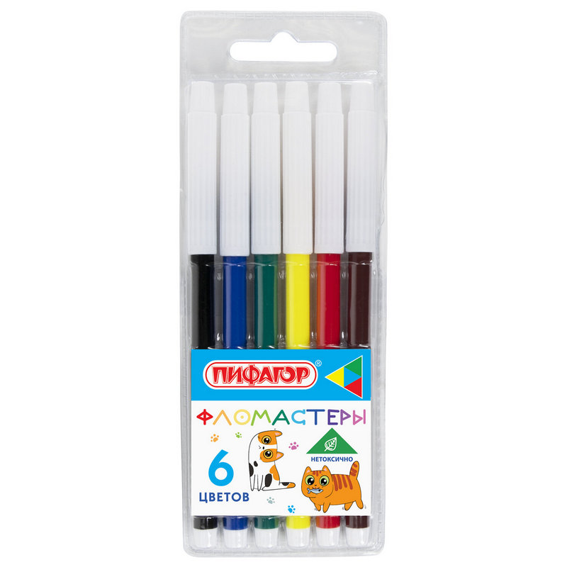 Обладают яркими цветами в количестве 6 штук. Длина корпуса удобной круглой формы составляет 141 мм, а диаметр - 7,5 мм. Благодаря толщине линии письма 1 мм и диаметру пишущего узла 1,8 мм процесс раскрашивания становится легким.