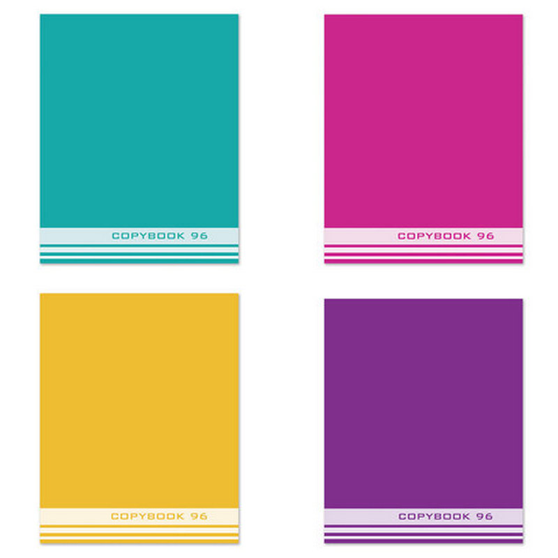 Внутренний блок содержит 96 листов типографской бумаги плотностью 60 г/м2 с серым оттенком. Однотонная обложка выполнена из мелованного картона. Линовка – клетка с полями. Скрепка надежно скрепляет листы между собой. Белизна – 80%. Формат А5.