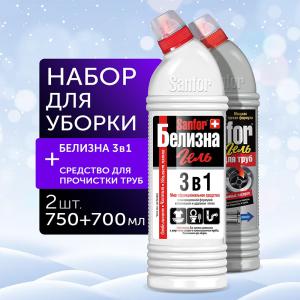—Средство для прочистки труб "Sanfor" УльтраБелый (500мл)+Белизна "Sanfor" (500мл)