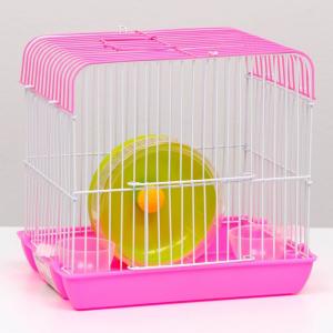 Клетка для грызунов с колесом и поилками, 22 х 16 х 20 см, розовая 7876861
