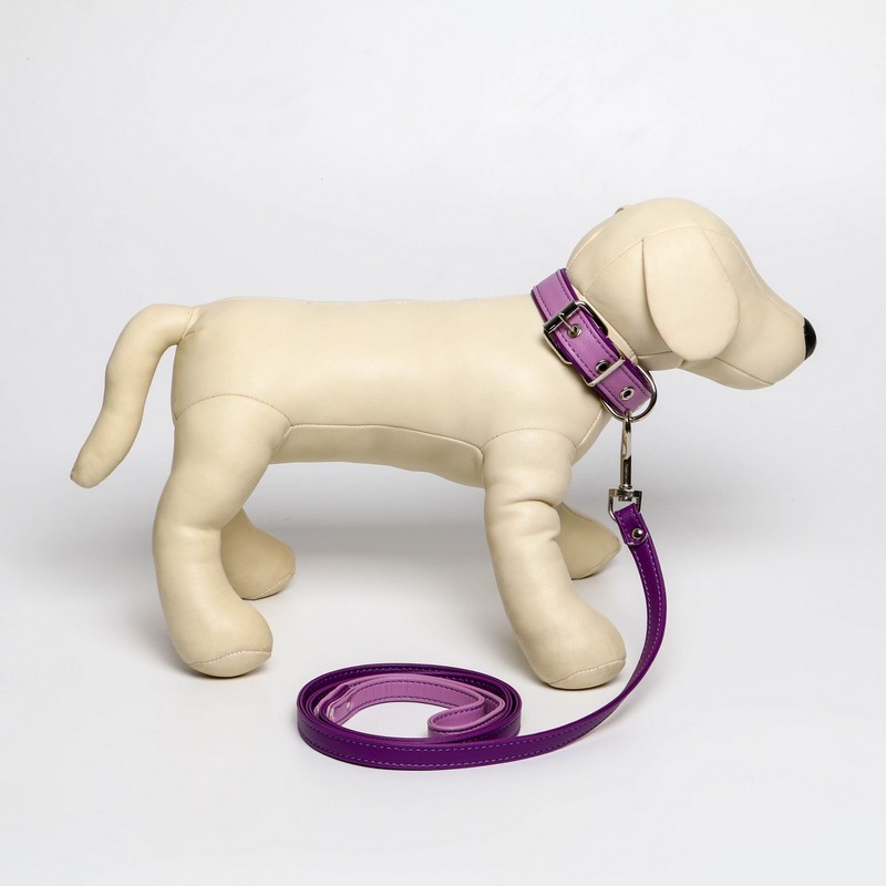 —Комплект ошейник и поводок из экокожи, сиреневый с фиолетовым 7358657