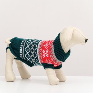 Свитер вязанный с орнаментом, размер S (ДС 18, ОГ 26-32, ОШ 18-24 см), зелёный 9077891