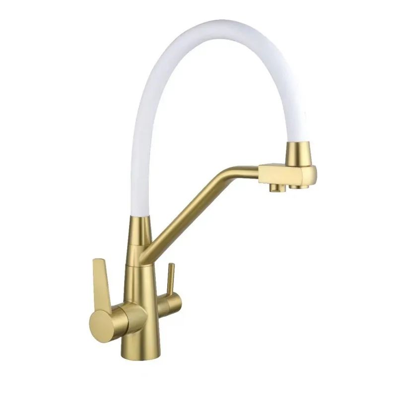 Смеситель для кухни "Splenka" золотой сатин, белый излив