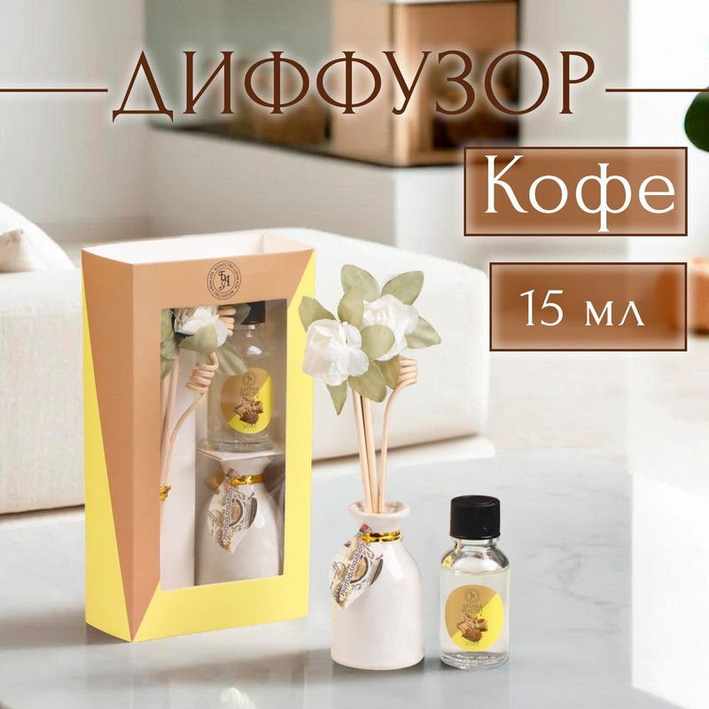 —Набор подарочный с диффузором "Ваза с цветком", аромат кофе, "Богатство Аромата" 2450286
