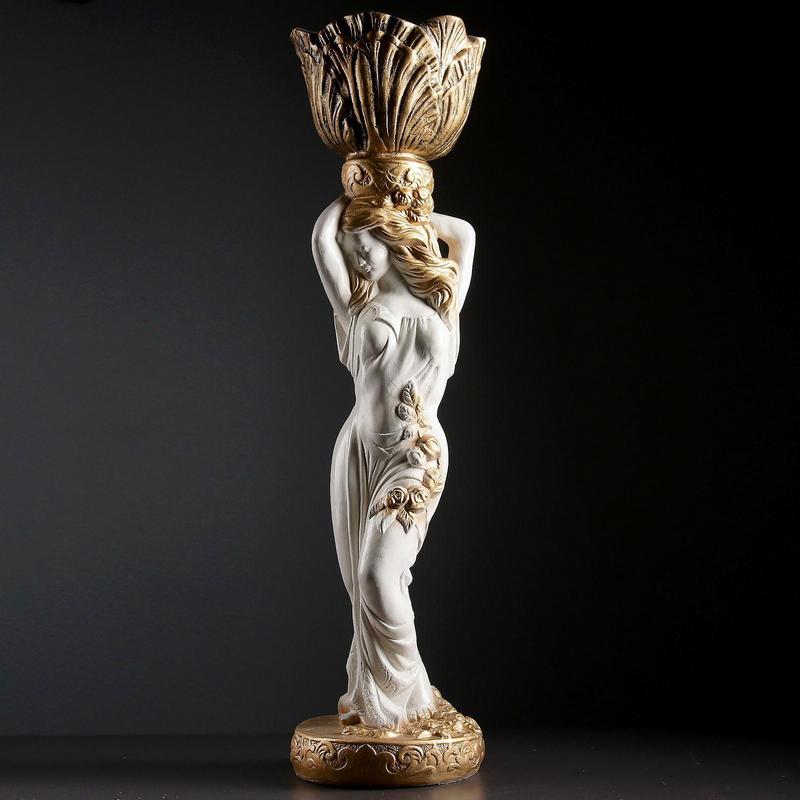 —Фигура "Девушка стоя кашпо на голове средняя" белый-бронза, 1,5 л / 19х80х19см 1073658