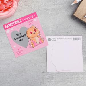 —Валентинка со скретч слоем "Хочу признаться тебе",зая 10*10 см.