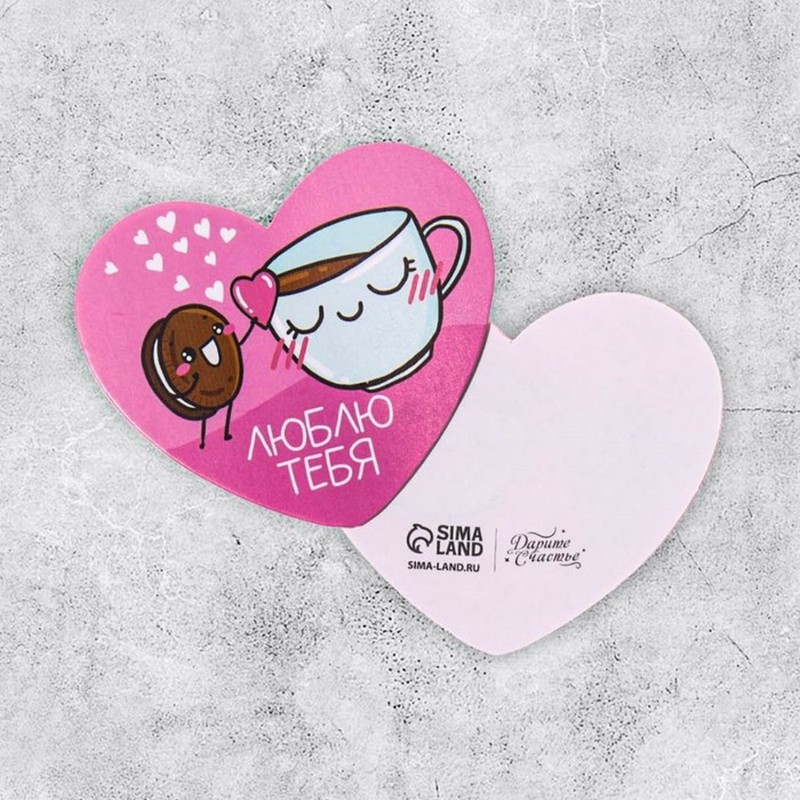 Открытка-валентинка "Люблю тебя" печенька, чашка, 7,1 x 6,1 см 9373631
