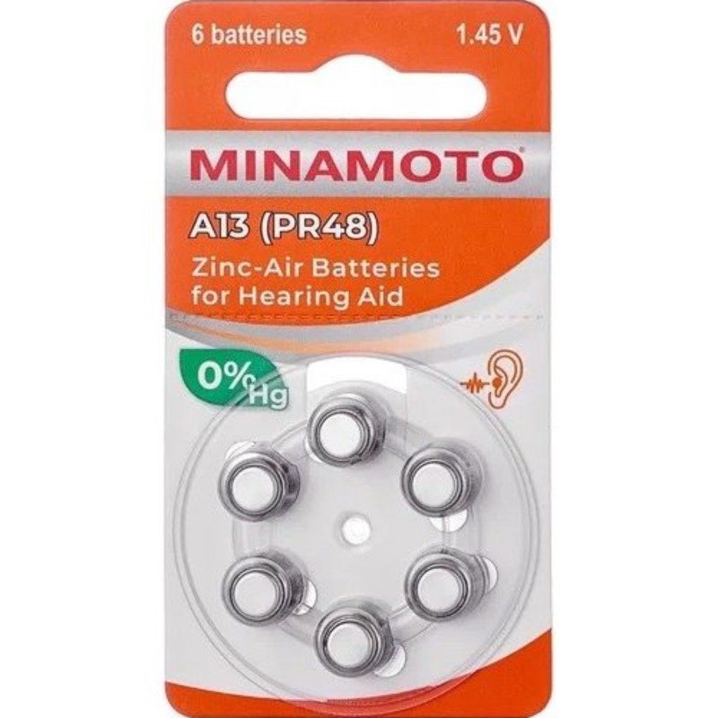 Батарейки "Minamoto" A13 (PR48) для слуховых аппаратов (6шт) (828886)