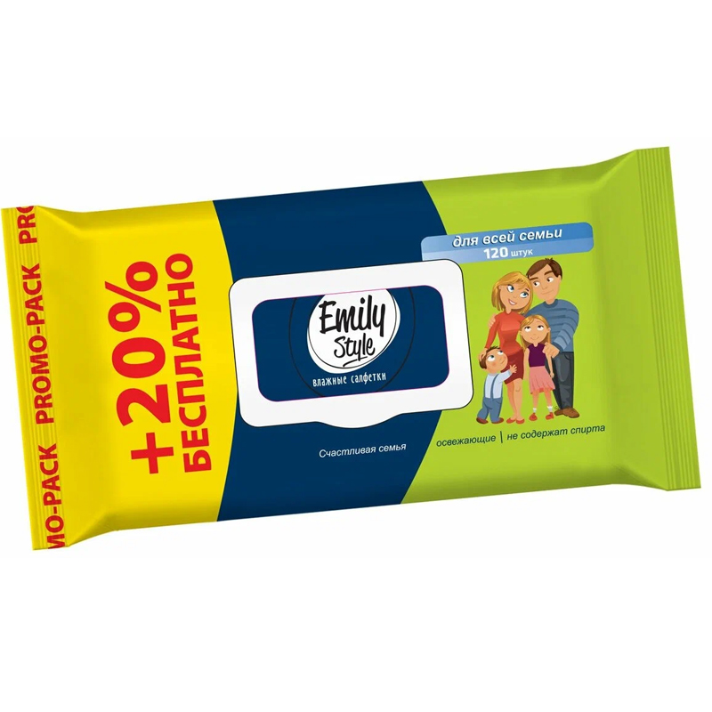Влажные салфетки "Emily style" Для всей семьи, с клапаном (100+20шт)