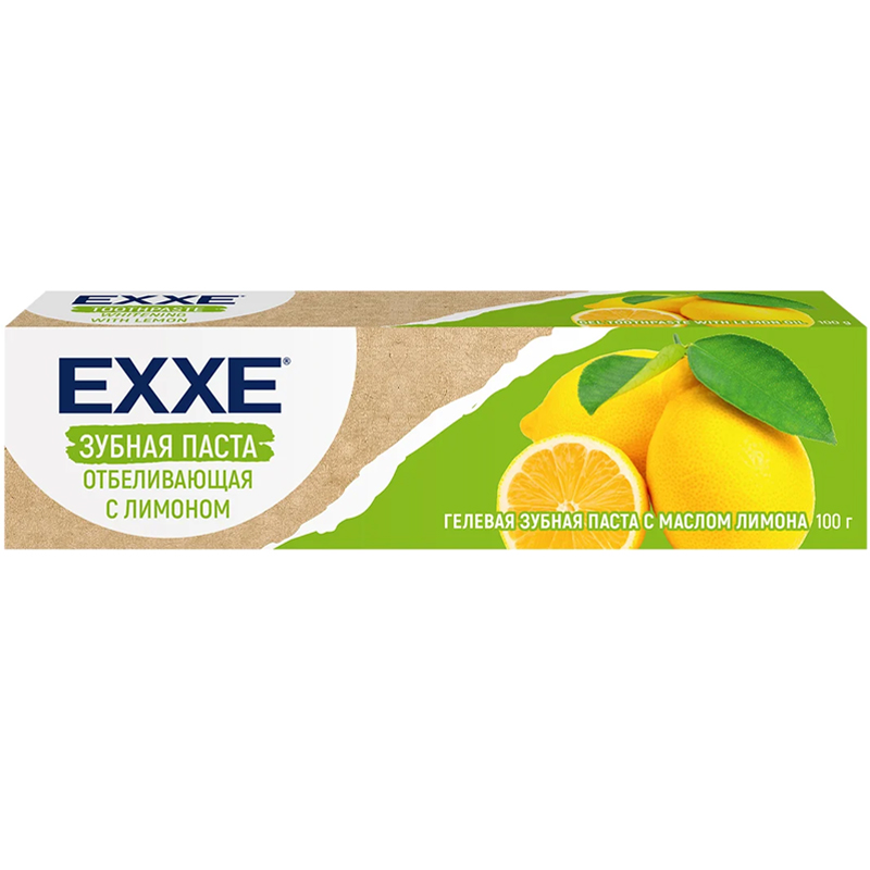EXXE Зубная паста Отбеливающая с лимоном предназначена для ежедневной гигиены полости рта и восстановления естественной белизны зубов.