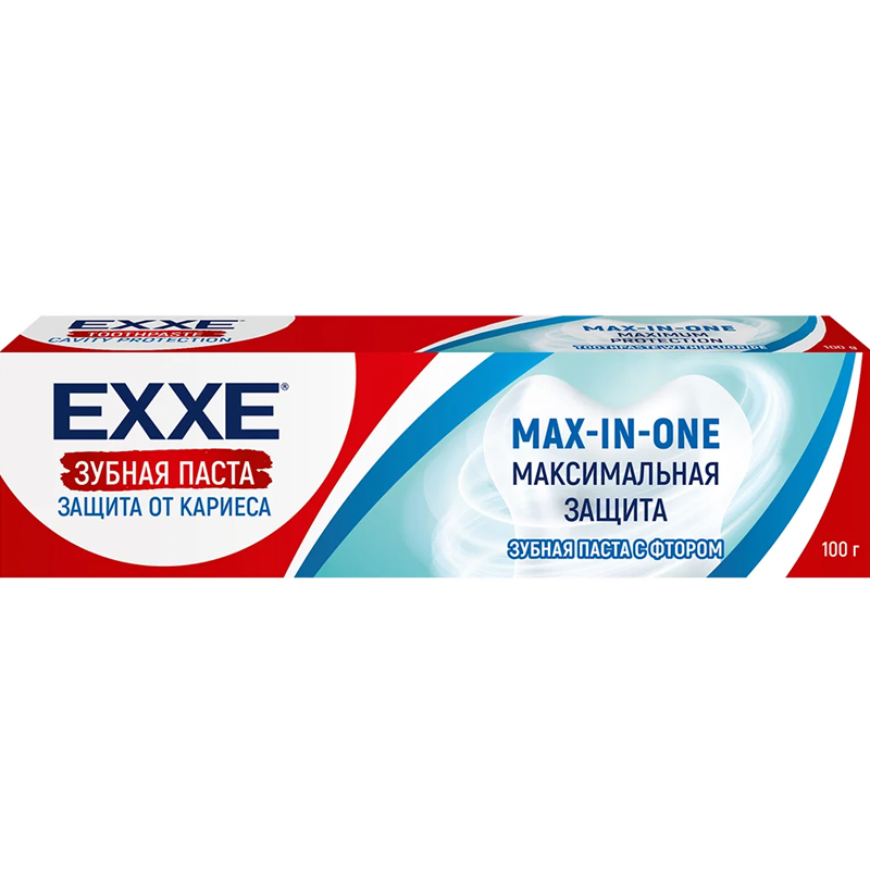 EXXE Зубная паста от кариеса максимальная защита. Содержит фтор и кальций для защиты от кариеса и комплексного ухода за полостью рта.