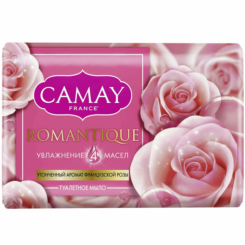 Твёрдое мыло Camay Romantique — это нежность лепестков роз и тонкий аромат романтики. Аромат, вдохновлённый розами из знаменитого французского парка Багатель в Париже, пробудит ощущение влюбленности. Почувствуйте прохладу и свежесть аромата зелёного яблока в верхних нотах аромата, переходящую в окутывающий, тёплый, цветочно-медовый запах красных роз в сердце аромата и завершающие романтическое ощущение сладковато-древесные нотки кедра.В основе парфюмированных средств для ухода за собой Camay лежат премиальные парфюмерные композиции. Они пробуждают чувственность и ощущение красоты, ухаживают за кожей, придавая ей нежность после каждого принятия душа или ванны.