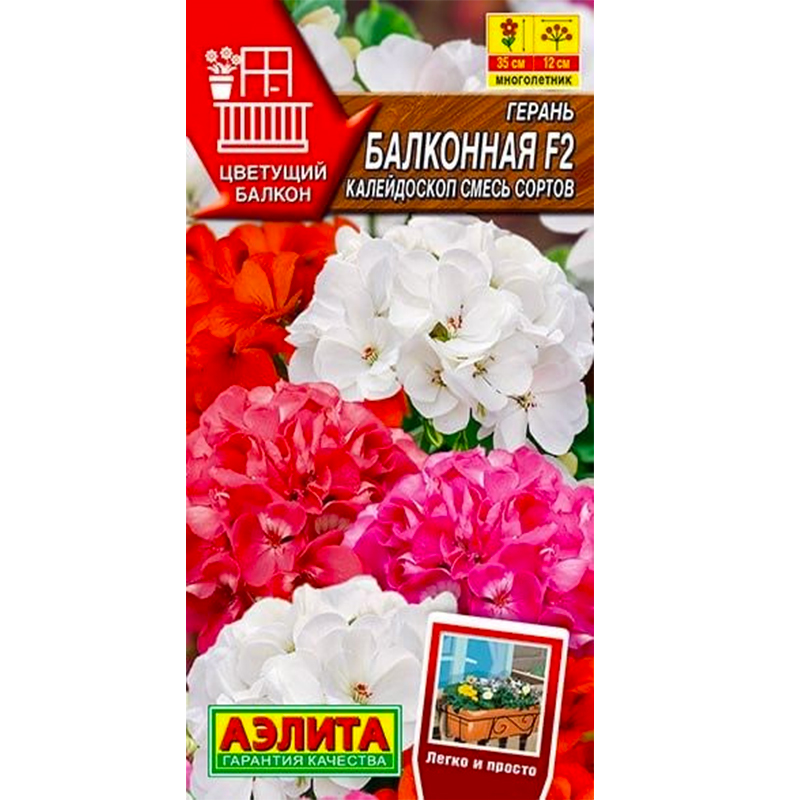 Кустики герани имеют компактные и крепкие формы, достигая высоты 25-35 см. Соцветия длиной 10-12 см состоят из множества мелких цветков диаметром 2-3 см. Осенью, до наступления заморозков, растения можно перенести в дом и разместить на солнечном подоконнике, где они продолжат радовать своим цветением.
