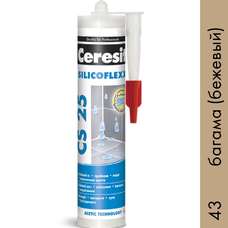 Силиконовая затирка CS 25 предназначена для герметизации угловых, деформационных и примыкающих к санитарно-техническому оборудованию (ваннам, раковинам и др.) швов плиточных облицовок в помещениях с повышенной влажностью: ванных комнатах, душевых, кухнях, туалетах и т.д. Обладает высокой адгезией к эмалированным поверхностям, стеклу, фарфору и фаянсу.