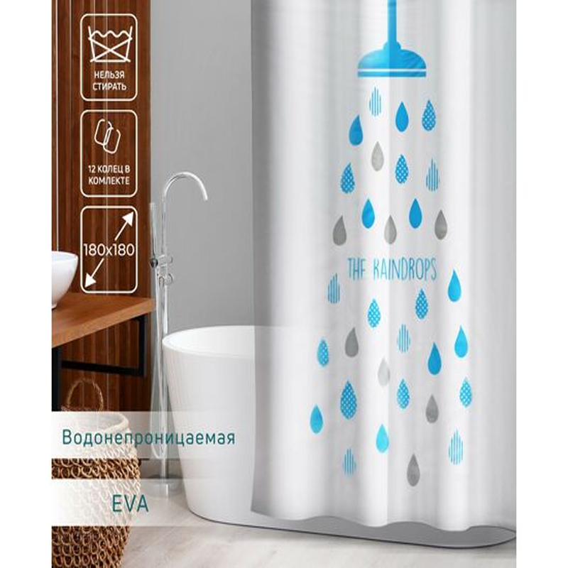—Штора для ванной "Капли", 180х180 см, EVA 3954431