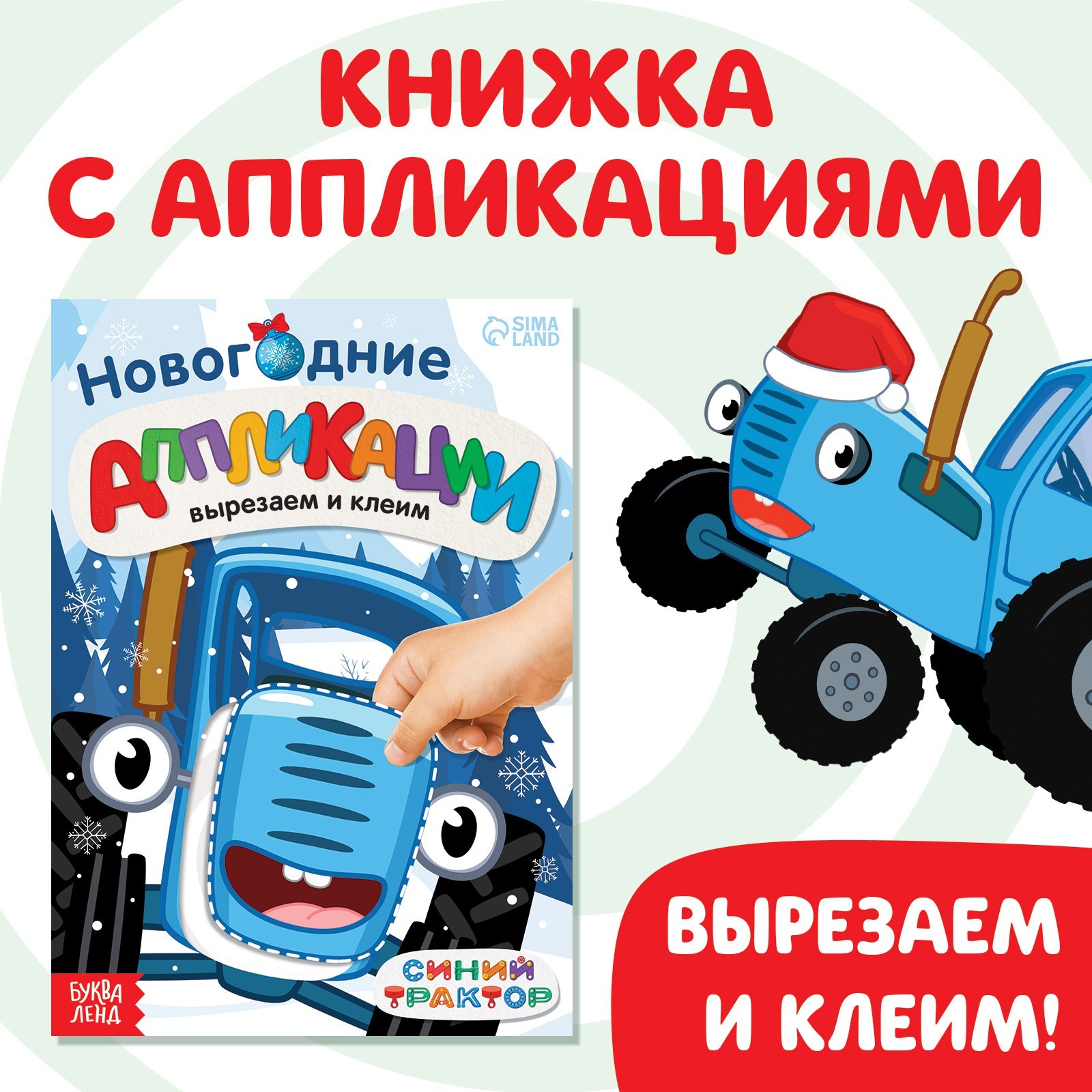 Новогодние аппликации "Вырезаем и клеим", 20 стр., 17х24 см, Синий трактор 9224471
