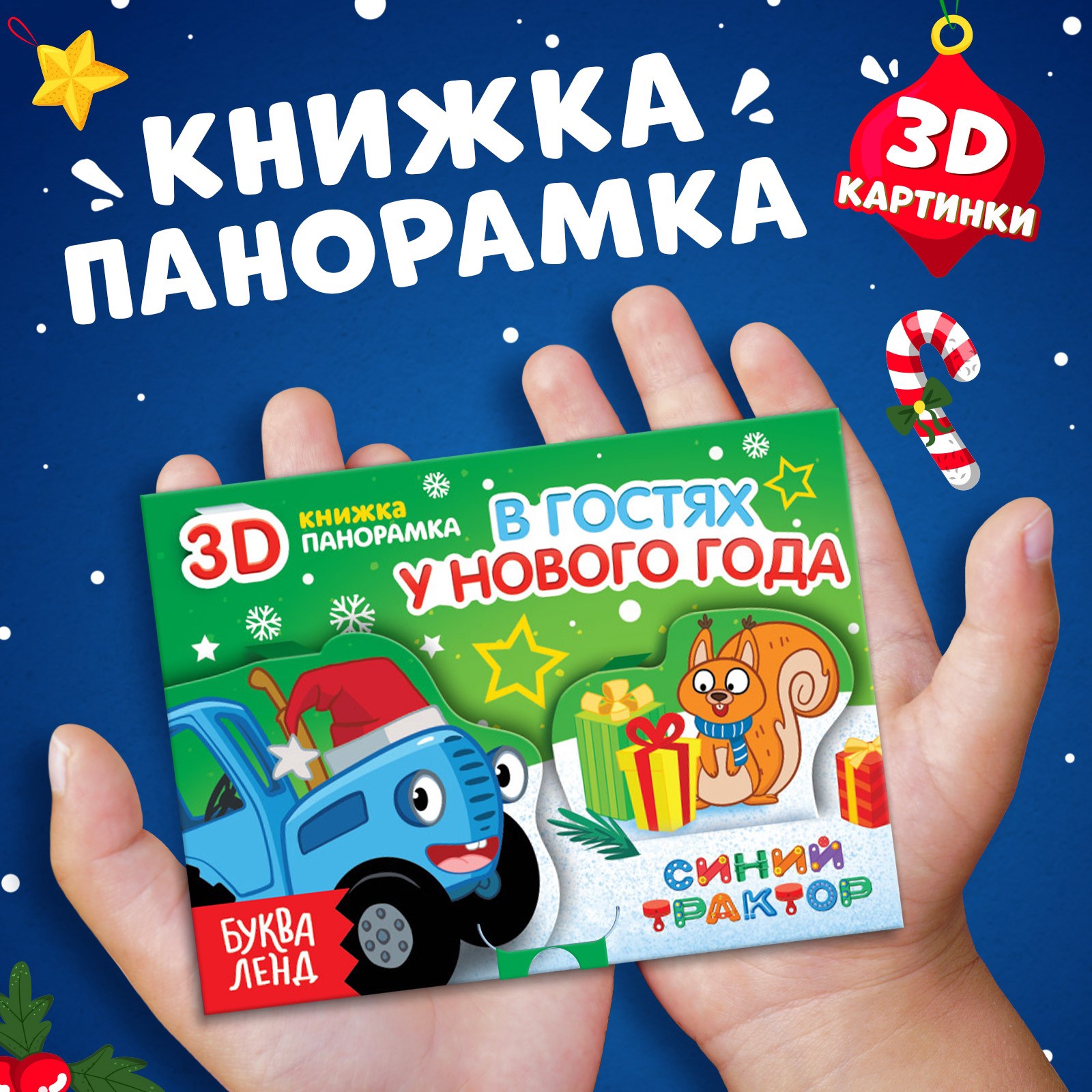 —Книжка-панорамка 3D "В гостях у нового года", 12 стр., Синий трактор 9838759