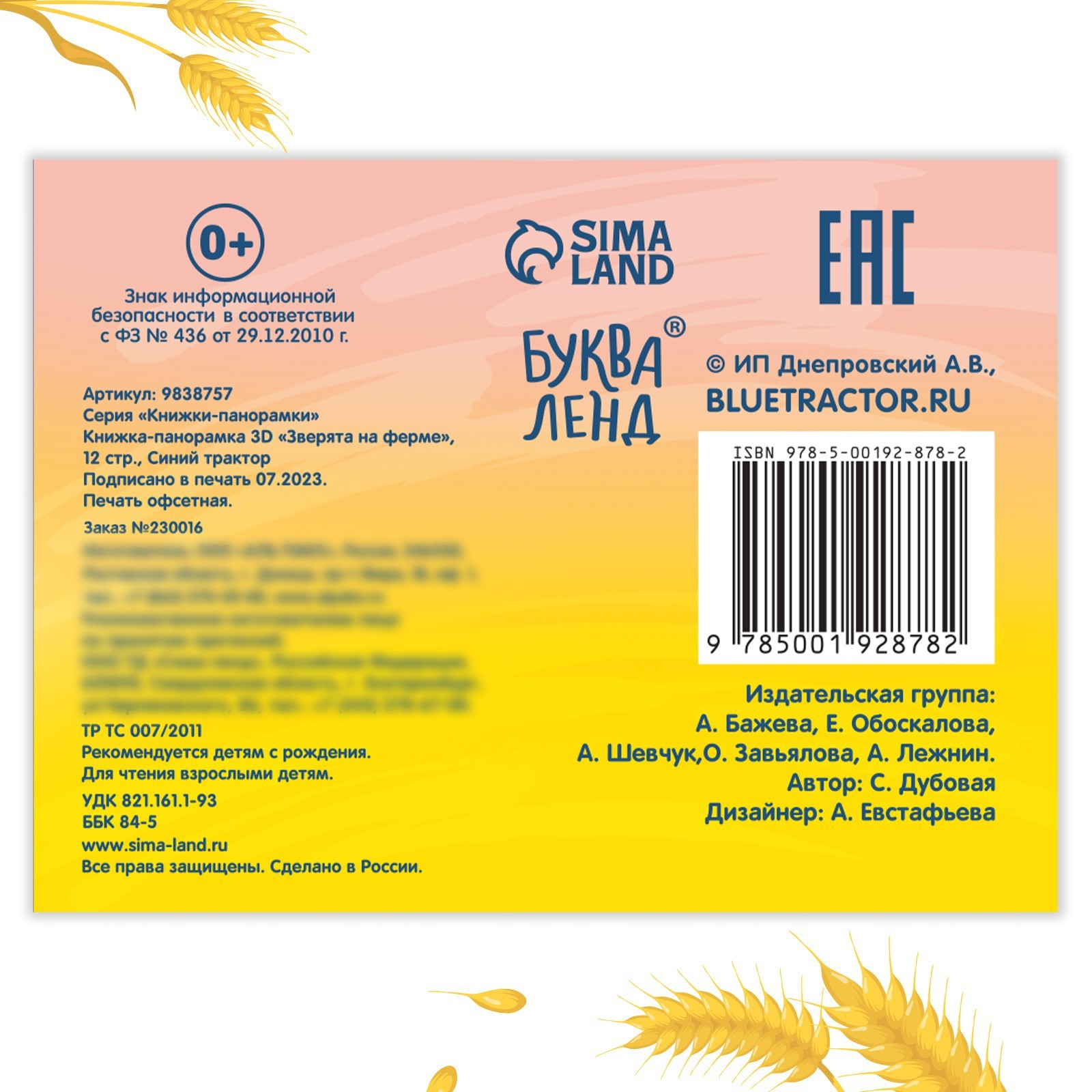 —Книжка-панорамка 3D "Зверята на ферме", 12 стр., Синий трактор 9838757