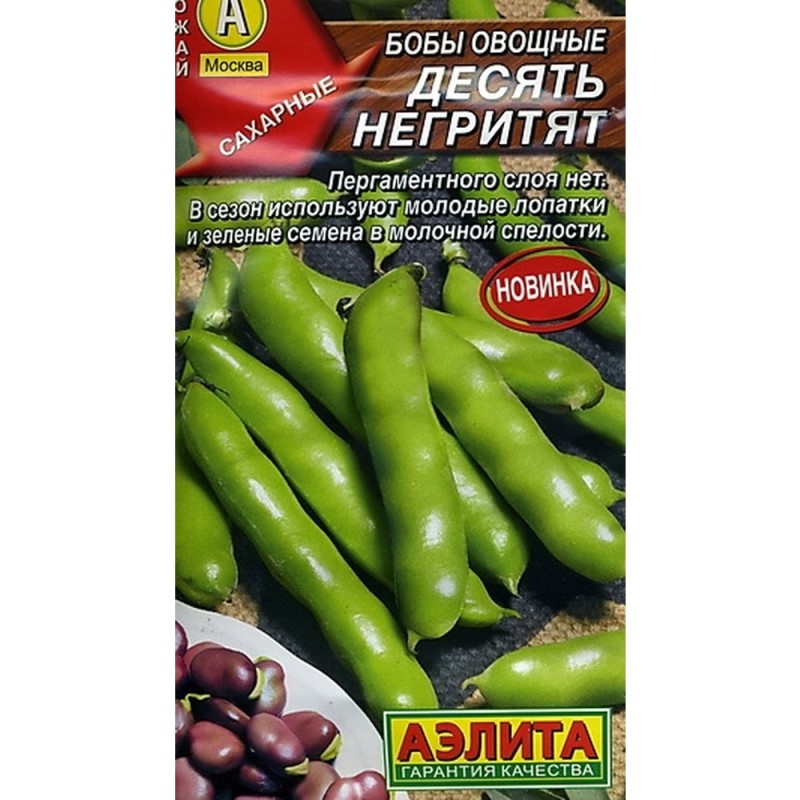 Холодостойкий, среднеспелый сорт. От всходов до технической спелости 75-85 дней, до созревания семян 90-110 дней. Растение кустовое, высотой 80-100 см. На кусте формируется 16-25 бобов длиной 7-10 см. Створки сахарные, без пергаментного слоя. При созревании не растрескиваются. Семена в биологической спелости черно-фиолетовые. Используются молодые лопатки и зеленые семена в молочной спелости. Урожайность зеленых бобов 0,5 кг/м2, зрелых семян – 0,3 кг/м2.
