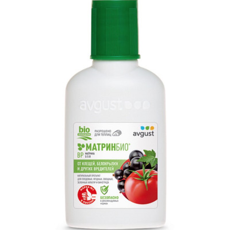 Насекомые и клещи, после контакта с препаратом, снижают двигательную активность, перестают питаться и погибают за 3-5 дней. МатринБио воздействует на разные стадии развития вредителей, уничтожает даже яйцекладки. Защитный эффект продлится не менее 14 дней. Благодаря натуральным экологичным компонентам собирать и употреблять урожай в пищу можно уже через 3 дня после обработки.