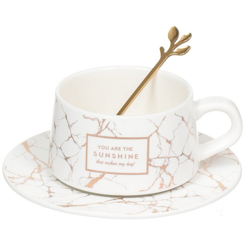 Чайная пара керамика 2предмета на 1 персону,220мл,белый и черн.мрамор 4-3201 в ассор.