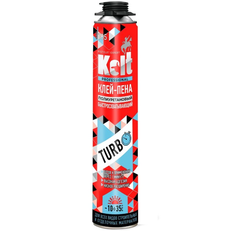 Универсальный быстротвердеющий и высокопроизводительный полиуретановый клей-пена с высокой степенью адгезии идеально подходит для крепления гипсокартонных, волокно-цементных, стеклопластиковых, полистирольных, пенофенольных, меламино-фурановых плит. Преимуществом данного клея является скорость первичного схватывания - 60 секунд.