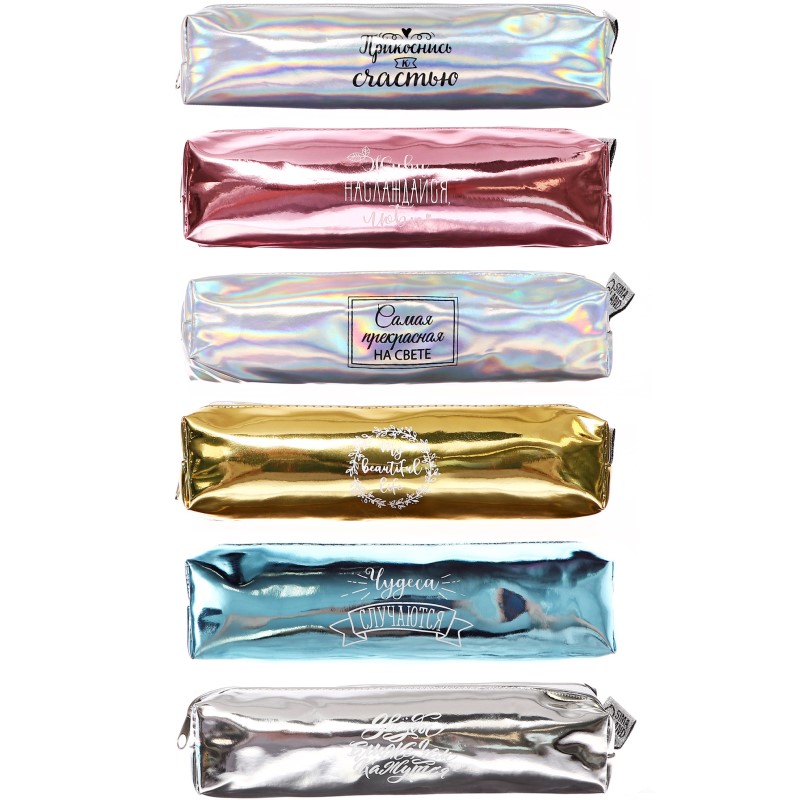 Пенал мягкий 1 отд. Объем 80*190*30 зеркальный МИКС с надписями 4023765