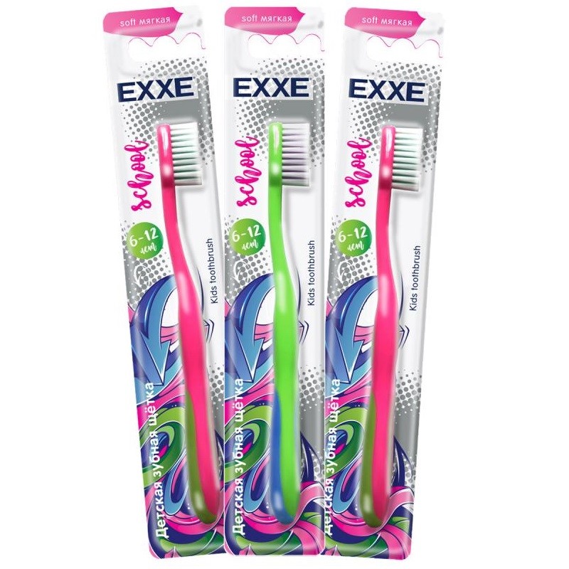 Зубная щётка мягкая для детей ТМ «EXXE». Для ухода за коренными зубами для детей 6-12 лет. Особые мягкие и ультратонкие щетинки деликатно и бережно воздействуют на зубную эмаль и дёсны.