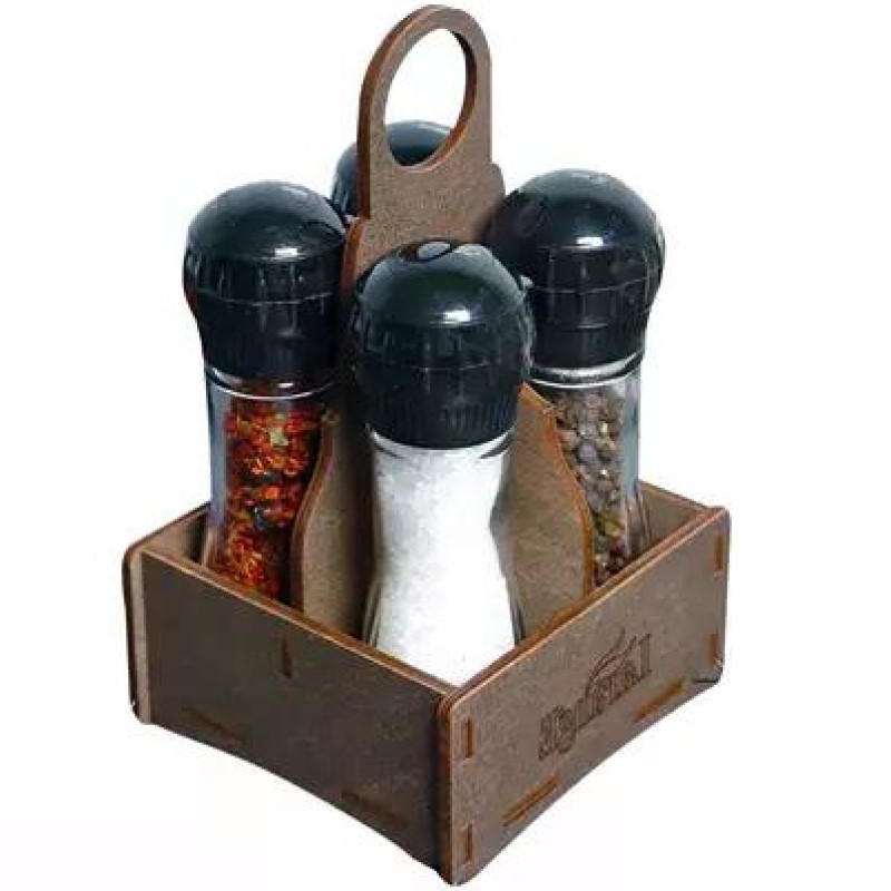—Набор ёмкостей д/специй 75мл 4шт стекл+мельница черная кр на дер подставке с ручкой цвет палисанд