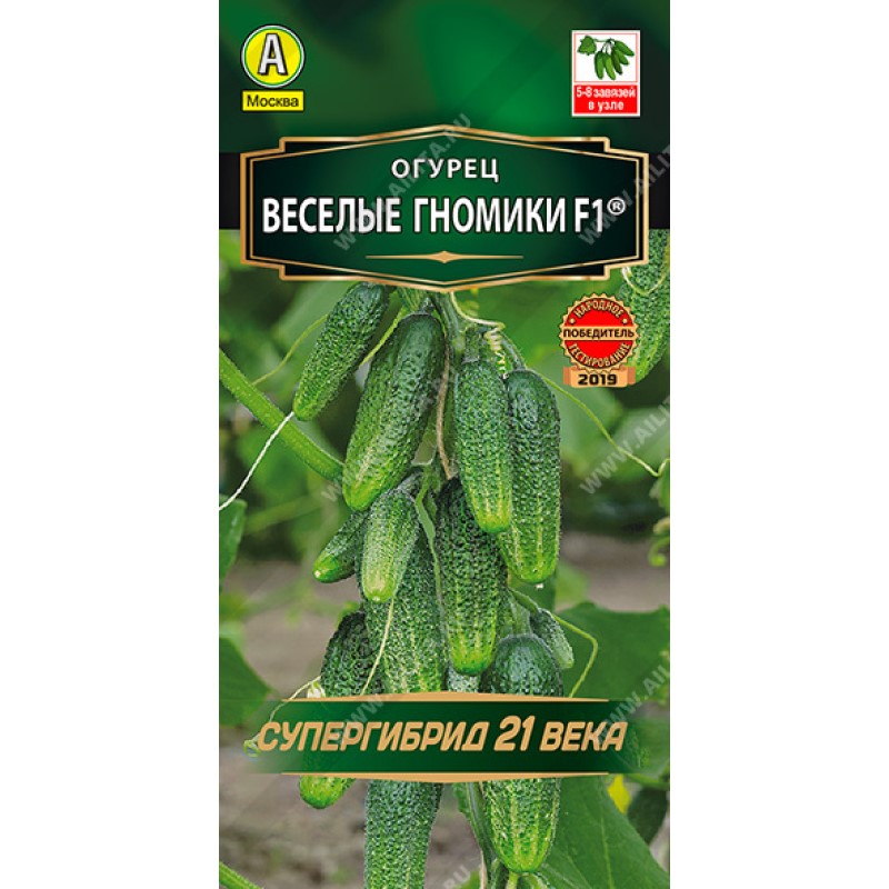 Ультраскороспелый партенокарпический гибрид с пучковым типом заложения завязей. В каждом узле образуется целый букет корнишонов – 5-8 шт.! Первые огурчики собирают уже на 38 день после всходов. Зеленцы короткие, не перерастают, сочные и хрустящие, без горечи. Идеальны для засолки. Урожайность 17-18 кг/м 2 .
