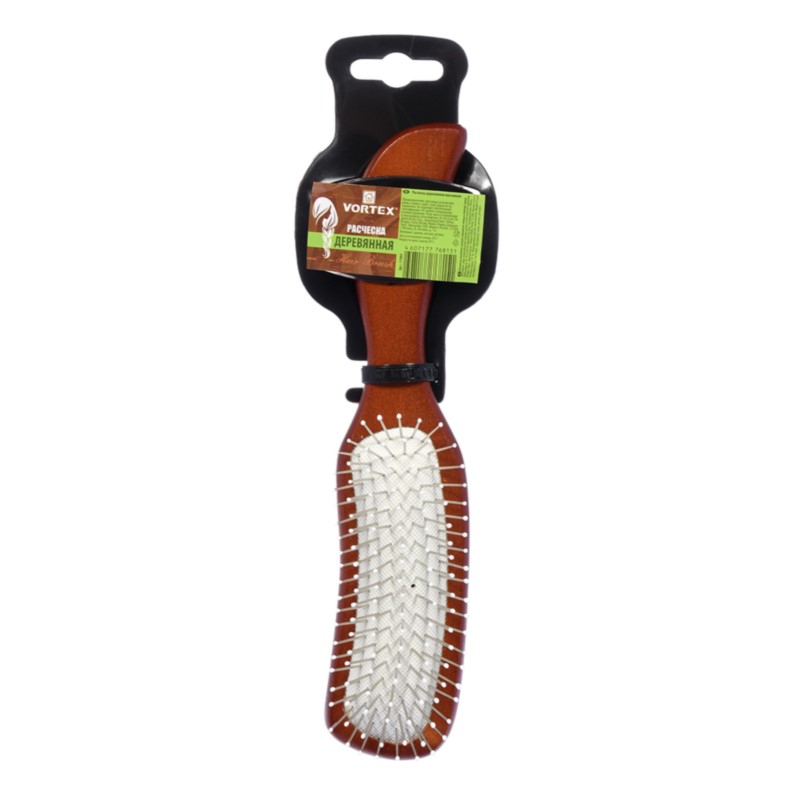 —Расческа массажная деревянная "Волна" с мет. зубчиками, 23,5*4,5*3,5см