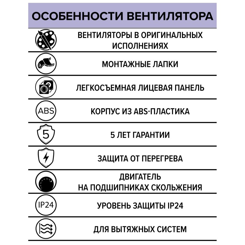 — стильная закрытая лицевая панель легко снимается при обслуживании вентилятора, что упрощает очистку,