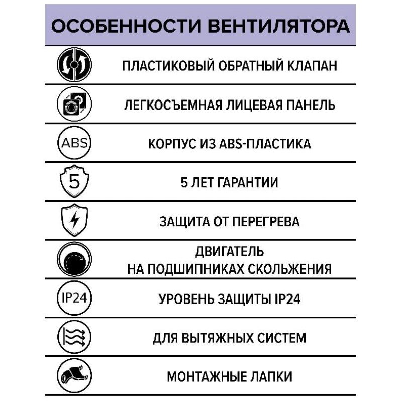 — стильная закрытая лицевая панель легко снимается при обслуживании вентилятора, что упрощает очистку,