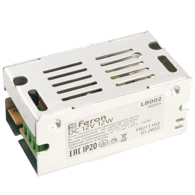 —Feron Трансформатор электронный для светодиодной ленты 12W 12V (драйвер) LB002 48005