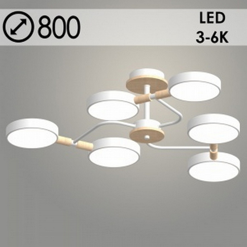 —Люстра XI3271/6 GREY+WOOD серый/дерево 108W LED 3000-6000K d800 h190