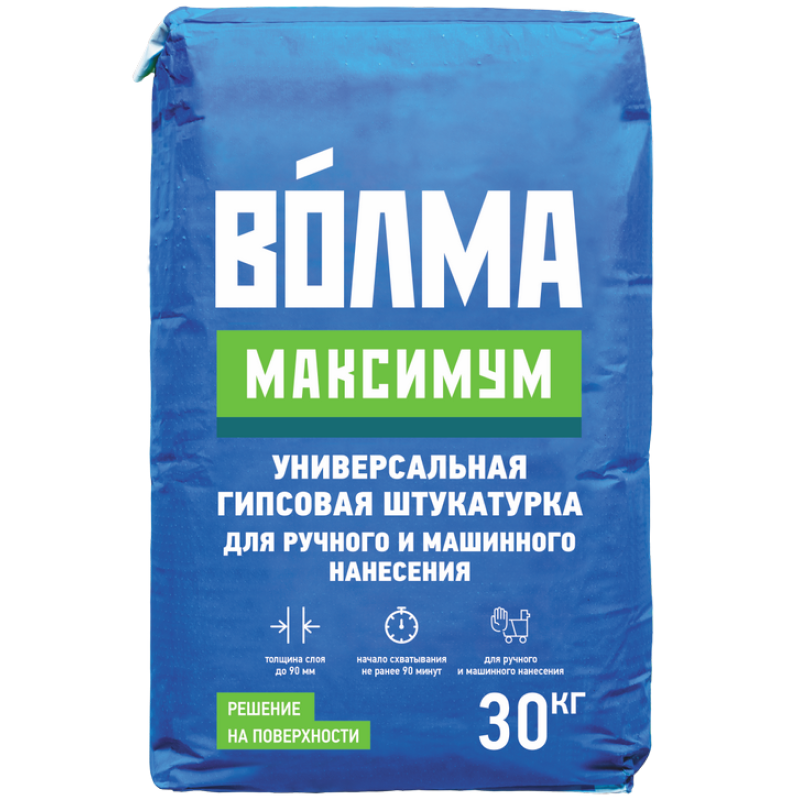 ВОЛМА-Максимум - сухая штукатурная смесь на основе натурального гипса, легкого заполнителя с применением минеральных и химических добавок, обеспечивающих высокую адгезию, водоудерживающую способность и оптимальное время работы.