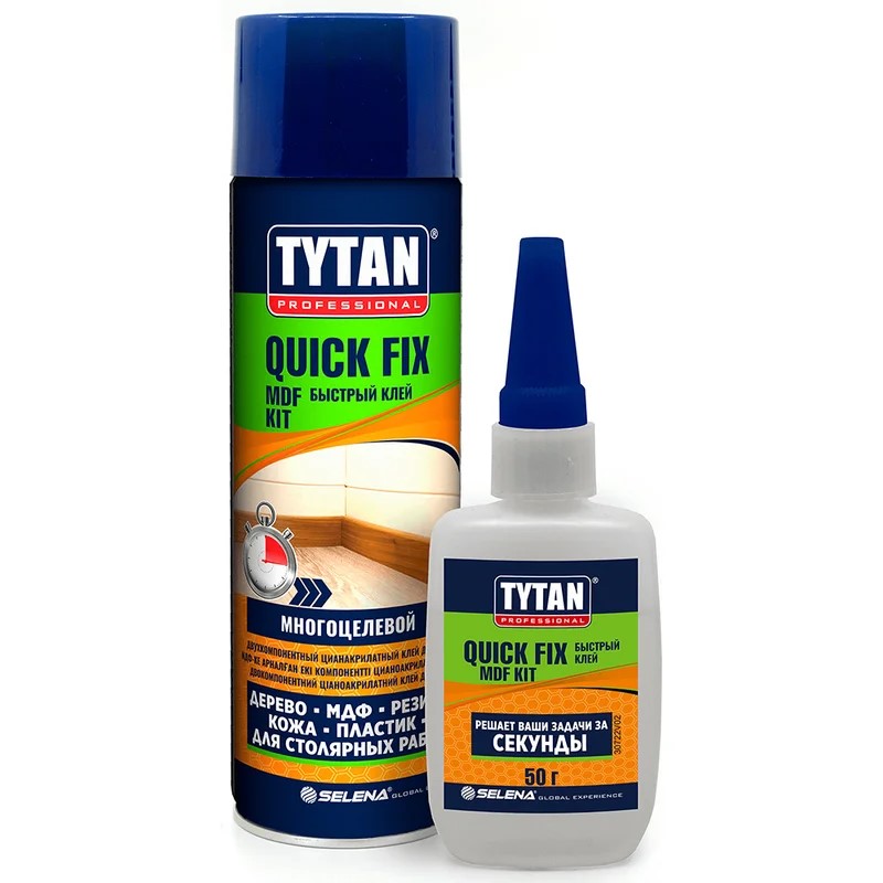 —Клей "QUICK FIX" для МДФ цианакрилатный 2-х комп. 400мл+100г прозрачный "TYTAN PROFESSIONAL"
