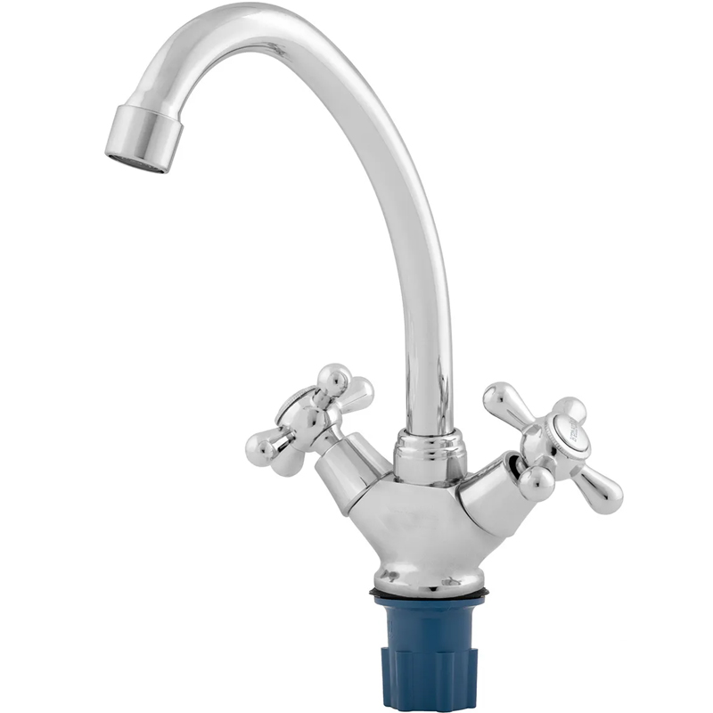 Двухвентильный смеситель для кухонной раковины с поворотным изливом.Классический дизайн с крестообразными ручками.