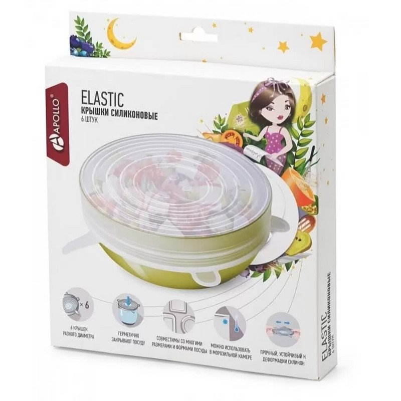 —Крышка для посуды растягивающаяся из силикона 6шт 6-20см, Apollo elastiс, ELS-06