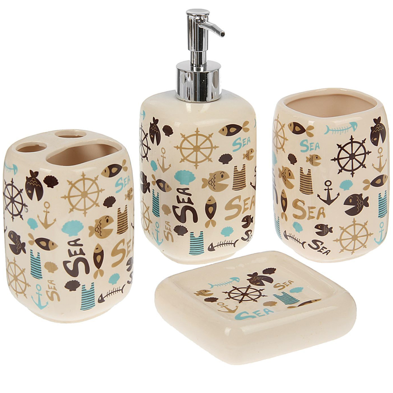 —Набор для ванной "Дамаск" 4 предмета (мыльница, дозатор для мыла, 2 стакана) 2499333