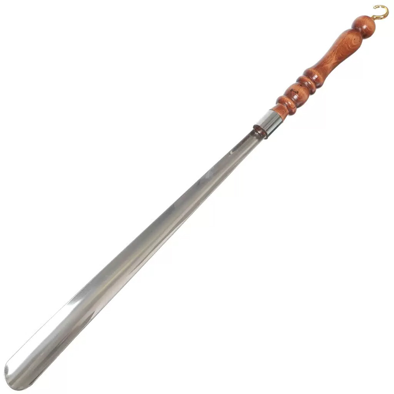 Наш рожок для обуви металлический, изготовлен из высококачественного прочного металла, не гнется при использовании, в отличие от пластиковой ложки для обуви никогда не сломается. Помимо этого, металлическая ложка для обуви оснащена крепкой, резной, деревянной ручкой, имеет красивый, стильный дизайн.