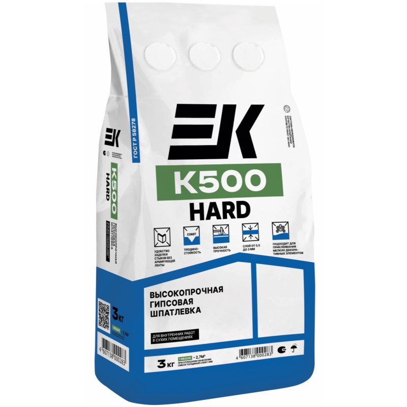 Шпатлевка ЕК предназначена для заделки швов между гипсокартонными и гипсоволокнистыми листами без использования армирующей ленты и в качестве ремонтного состава для быстрого устранения небольших сколов, трещин глубиной до 15 мм. Может применяться для выравнивания вертикальных и горизонтальных бетонных, цементных, цементно-известковых, гипсовых, гипсокартонных (в том числе перфорированных) поверхностей и ПГП в сухих помещениях под окраску и оклейку обоями.